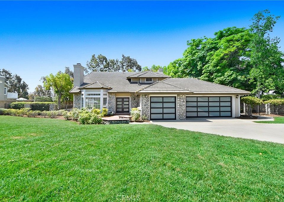 Super desirable neighborhood north of the 210 with a 1/2 acre lot, great schools, low tax rate and close to everything. This high-end remodeled 4 bdrm 3 bath home has been expertly redesigned with a gorgeous kitchen family room combo, the kitchen is upgraded with beautiful quartz counters, large island, separate work station with additional sink, large walk-in pantry, stainless appliances, self closing cabinets & drawers, bright natural light all overlooking the sparkling in ground pool/spa/waterfall. This home has 4 bdrms with 1 bdrm on the ground floor along with a full bath on the ground floor. 3 full baths are fully remodeled with taste and elegance. The large master retreat has a huge bathroom with dual quartz sinks, full length custom mirror, walk-in shower, soaking tub, water closet and walk in closet. The master suite has a large walk out balcony that over looks the pool & landscaping. The 2 additional bdrms upstairs are Jack & Jull with a beautiful bathroom. Enjoy the 3 car garage with high-end back-lit glass panel doors and ample parking on the concrete driveway and space to integrate RV parking. Brand new remodeled pool & spa with pebble tech and waterfalls. 3rd car garage can easily be converted to a large 5th bdrm! ... LOW TAX RATE! ... NO MELLO-ROOS