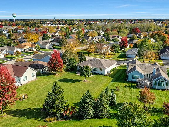 Don't miss your chance to enjoy resort-style living in one of the area's top 55+ communities, offering 3 pools, tennis and bocce ball courts, an indoor track, fitness centers, on-site dining, clubs, a theater, and so much more! Home has had only 1 owner! Very well cared for Nicolet model, on a very nice lot. The kitchen is bright and functional, featuring all stainless steel appliances and transom windows that fill the space with natural light. Just off the kitchen is a cozy eating area ideal for casual meals. The spacious living room and dining room are combined into one open area, perfect for entertaining or relaxing. From here, step out onto the deck through sliding glass doors, the backyard feels like a park, perfect for outdoor enjoyment. The primary bedroom features a walk-in closet and a private en suite bathroom with a standing shower. Home includes a Lawn Sprinkler System, New garage door opener, newer raised toilets, washer and dryer are about 3yrs old, New Furnace in 2023. Discover the lifestyle of the most sought after community in the Midwest.