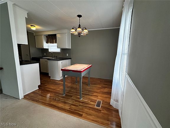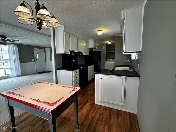 Wonderfully located within the Deer Meadows Community of New Springfield is one story living at its finest! Through the front door you will find the spacious living room full of natural light through the front bay window that offers serene country views. The layout opens from living to dining area with newer flooring flowing into the kitchen - updated in 2020 with new fridge, lighting in kitchen and dining, into laundry area. Plenty of storage throughout - nice kitchen cabinetry with charming window above the double sink and pantry with HWT below. New Lenox Elite Air Conditioning in 2020 and ceiling fans throughout keep this Sterling manufactured home cool in the summer with low utility costs all year long! Down the hall from the laundry area you will find 2 large bedrooms each with walk in closets and the primary bedroom with an additional closet. The full bathroom is bright and white and gleaming - updated in 2020 with new toilet, vanity, flooring and subfloor. Offering covered front patio lounging or rear patio relaxing, you can find comfort all year long in this 1050 sq ft home. Shed conveys. Deer Meadows Community application must be completed and approved prior to purchase, lot rent includes trash and snow removal and is $417/mo. Don't miss out on this rare opportunity!