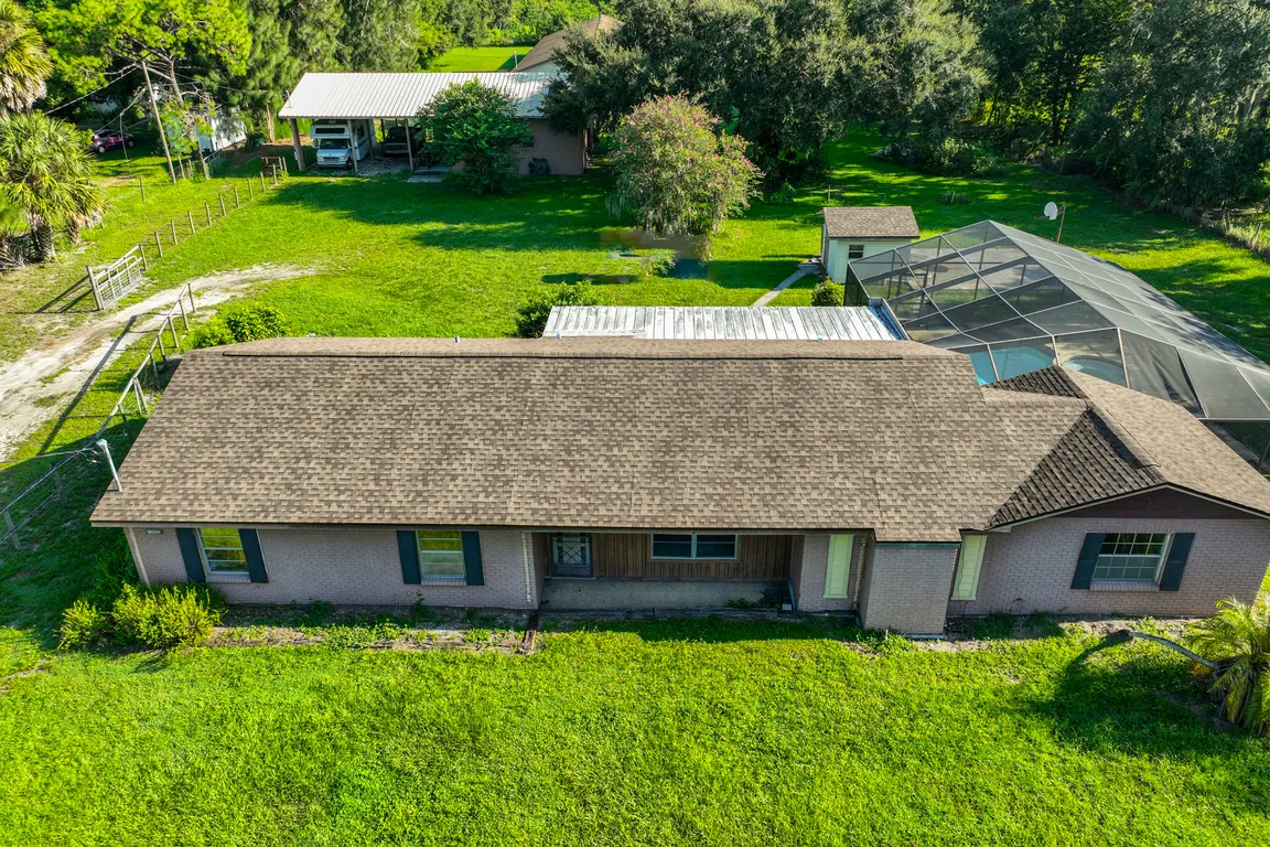 Screened-in poolRanch-style homeBrand new roofDedicated denSpacious layoutOpen kitchen