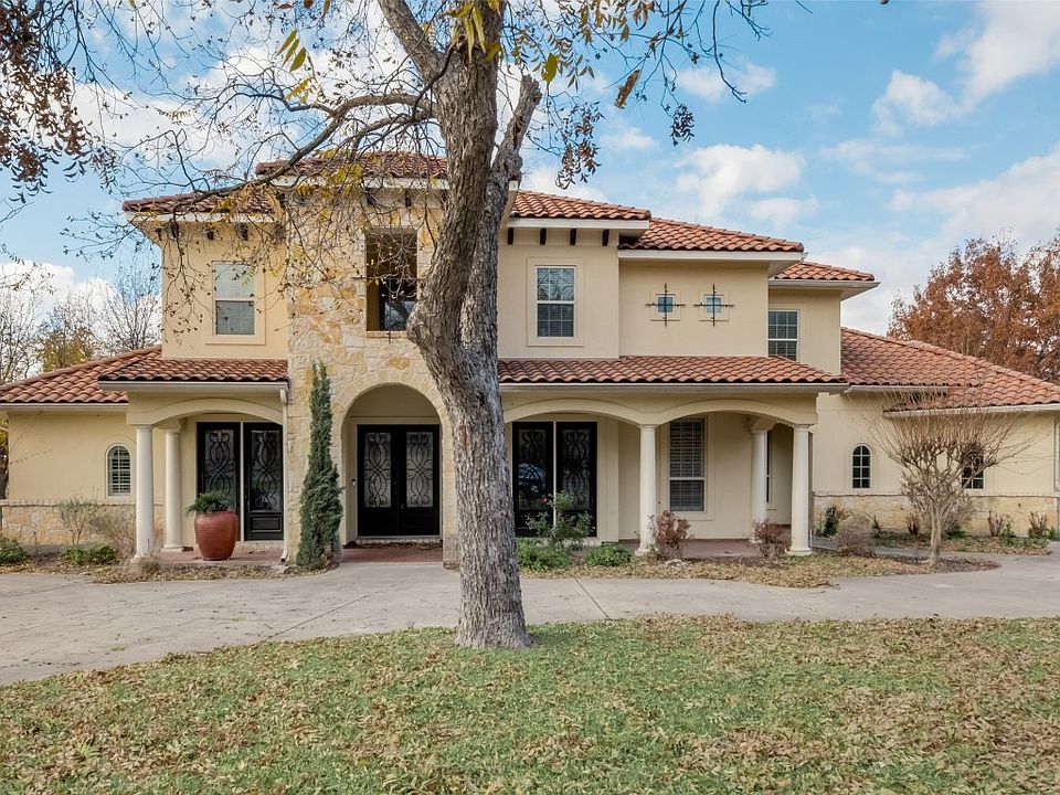 Look no further! This spacious 5 bedroom, 6 bath Mediterranean style home boasts over 5,000 sf of comfortable living space & situated on over a half acre lot. As you step inside, you're greeted by formal areas & walls of windows for natural light. A layout designed for modern living, the open-concept is ideal for entertaining, while bedrooms provide comfortable retreats. The secluded primary suite includes an enticing fireplace & spectacular bath with jetted tub & separate shower. Another 1st floor bedroom with full bath is ideal for guests. A chef's kitchen with large island, walk-in pantry & double ovens is not to be overlooked. Pvt. office on 1st floor is ideal for the at-home professional. Upstairs enjoy the large gameroom, media room & 3 additional bedrooms. Outside your cvd. patio includes a fireplace, outdoor kitchen & expansive yard overlooking Rawhide Creek. The large 3 car garage is not to be missed & includes an underground tornado shelter. Welcome to your new home!