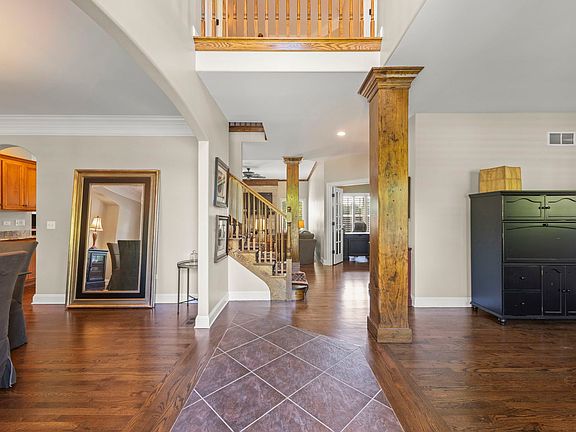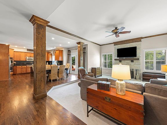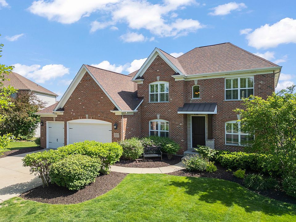 Gorgeous custom-built home by DJK Custom Builders, ideally situated on a corner lot in a quiet cul-de-sac within sought-after Grande Park. From the moment you enter through the stately oversized front door, this home exudes elegance and quality. The main level features newly refinished hardwood floors, 42" custom cabinetry, stainless steel appliances, and a step-in pantry. Beautiful architectural details like rich wood columns, crown molding, oversized trim, plantation shutters and a striking stone fireplace. Brand new carpet in the family room and staircase to the finished English basement. Additional features include a first floor office with french doors and a custom built-in in the mud room that is adjacent to the laundry area. Upstairs, you'll find four spacious bedrooms, including a luxurious primary suite with a custom walk-in closet and spa-like bath. Bedroom 2 boasts its own en suite, while Bedrooms 3 and 4 share a Jack and Jill bathroom. Also upstairs is a spacious bonus room offering additional flex space! The finished English basement features engineered hardwood floors, a large recreation area, a wet bar with beverage refrigerators and a dishwasher, a fifth bedroom, full bath, and ample storage. Enjoy outdoor living in style with a multi-level entertaining space that includes an upper deck and a beautifully designed paver patio with a built-in fire pit and grill. For convenience and additional recreation there is a park right across the street! New furnace and a/c in 2018, roof 2019, water heater 2021, humidifier 2025, new garage doors 2022. Grande Park Subdivision is a clubhouse and pool community with miles of walking trails, open spaces, multiple parks, basketball courts, tennis courts and a sled hill. Both the elementary and middle schools are within the subdivision. This home checks all the boxes and is truly a Gem!