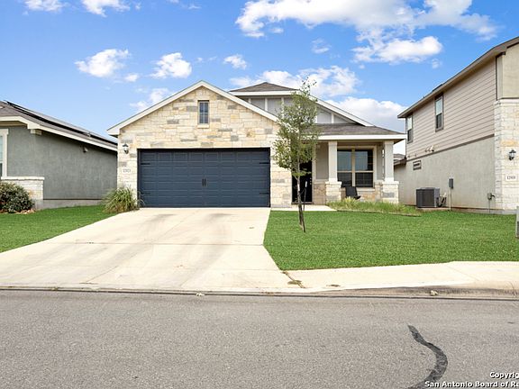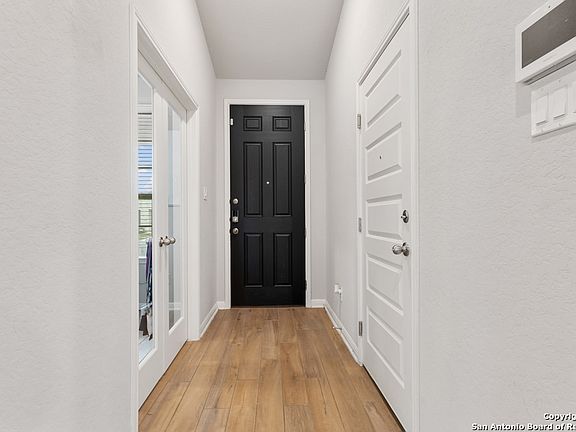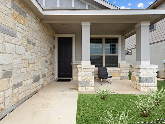 Welcome to this Meritage-built, single-story home in the desirable Prescott Oaks community! This 3-bedroom + study, 2-bath, 2-car garage residence features an open-concept layout with high ceilings and stunning upgrades throughout. The kitchen boasts quartz countertops, a large island, stainless steel appliances (including refrigerator and gas range), and modern cabinetry-perfect for any culinary enthusiast. Enjoy beautiful wood-look tile flooring, neutral modern paint tones, and a dedicated office space ideal for remote work. The spacious primary suite includes a large walk-in shower, dual vanities, and a big walk-in closet. Step outside to a privacy-fenced backyard with a cozy covered patio, perfect for outdoor dining and relaxing. Built with energy efficiency in mind, this home offers both comfort and savings. Community amenities include a pool, playground, and dog park. Just minutes from Government Canyon and in highly-rated Northside ISD. Schedule your private tour today!