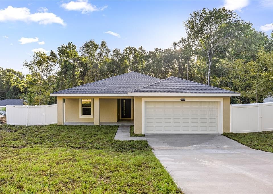 Brand New Construction in Belleview Modern Design, Prime Location...Welcome to the Emily Model a stunning new build located near The Villages in beautiful Belleview, Florida. Perfectly positioned close to major shopping centers and with easy access to the interstate, this home combines convenience with comfort and style. Step inside and experience the open-concept layout that highlights a giant center island, elegant light fixtures, and a seamless blend of modern finishes throughout. The kitchen is a chef’s dream, featuring stainless steel appliances, a spacious walk-in pantry, and an inviting design that flows effortlessly into the living and dining areas. Through the sliding glass doors, unwind on the covered lanai and enjoy peaceful views of your fully fenced backyard, offering both privacy and space to relax. Additional highlights include epoxy finishes at the entry pillars and in the garage, a 10-year structural warranty, and a 1-year workmanship warranty, giving you peace of mind for years to come. No HOA or CDD adds even more value to this already exceptional property. This is more than a home it’s a lifestyle upgrade. Come see the perfect mix of location, design, and quality in one of Belleview’s most accessible areas.