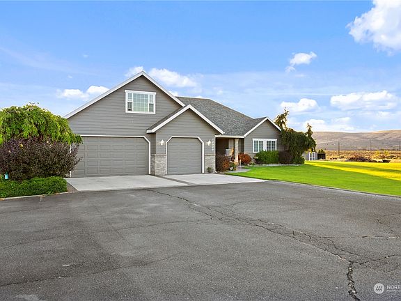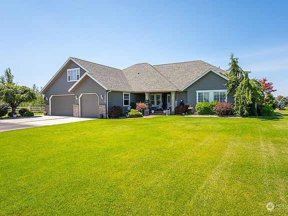 Welcome to this stunning 4-bed 3-bath home; this spacious property boasts 2.18 irrigated acres, offering a picturesque setting with a beautifully fenced yard perfect for outdoor activities or gardening. Large covered back deck is an ideal spot for relaxation, while the stamped concrete walkways and patio add a touch of elegance to the exterior. Inside, you'll find an abundance of natural light flowing through the vaulted ceilings and tray ceiling accents. The expansive kitchen with a dining bar is a dream, and additional features such as walk-in closets, fresh paint, and a propane fireplace provide comfort and style. With a 3-car garage, this home is ready to welcome its new owners. Don't miss the opportunity to make this your forever home!