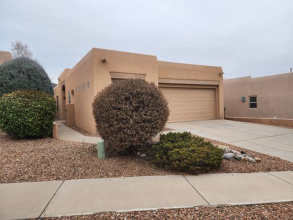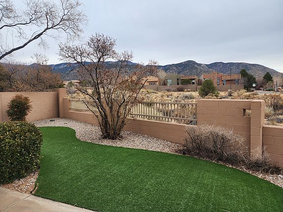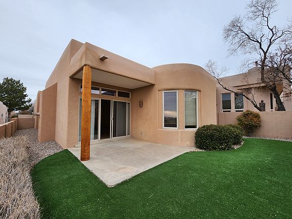 High Desert Gem with incredible mountain and city views. This is a gorgeous home with high ceilings and an open concept floorplan and it has tons of amenities. As you enter this home you are greeted with glass accents, tall ceilings and niches. The kitchen is fully equipped with side by side refrigerator, electric stove top, microwave, dishwasher and full sized washer/dryer included. The living room has great space and a gas burning fireplace with a covered patio that offers spectacular views of both the mountains and the city lights. The primary bedroom has an ensuite with a garden tub, a separate shower and a huge closet. The other 2 bedrooms are on the opposite side of the home along with another full bathroom. There is a 2 car garage and the back yard has artificial turf offering maintenance free so you have more time to enjoy the view and trails which are right outside your door. Shopping and restaurants are close yet this home offers the serene quiet and beauty of the Sandia mountains. 8-9 Month lease to begin, $50.00 application fee per adult, tenant pays all utilities.