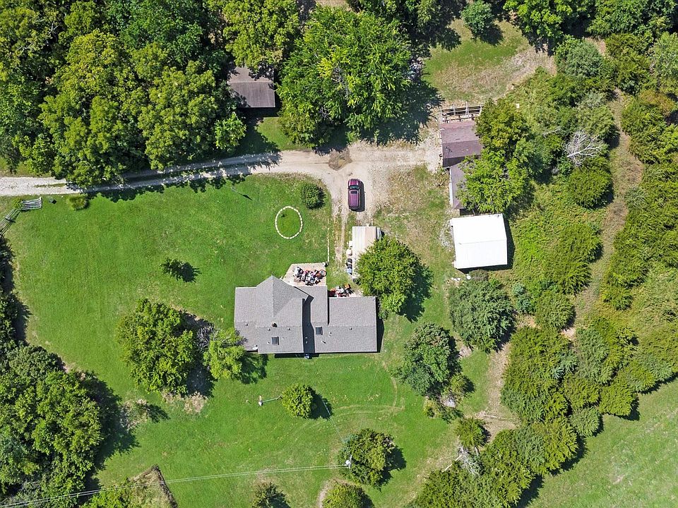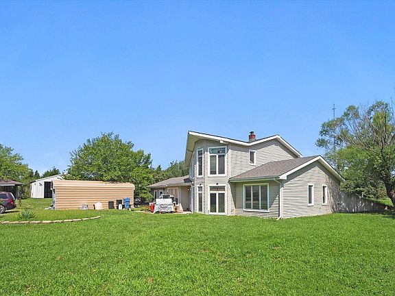 Create your homestead on this Leavenworth county acreage just outside of Lawrence. This earth-contact home provides for low utility costs and a less than 2-year old roof. You'll love the privacy and open space with surrounding trees and a private pond. There is a large metal shed and barn, a hangout gazebo, and an additional carport structure. The land has almost five acres and plenty of space for whatever you can dream up. Inside you'll find an open kitchen with eat-in area, two large separate living room spaces, two main floor bedrooms and a main floor full bath. The second floor has a large primary suite with sitting room, and bathroom. New paint and carpet in bedrooms and stairs. This home is ready for you to make your own! Schedule a showing with Sarah today!