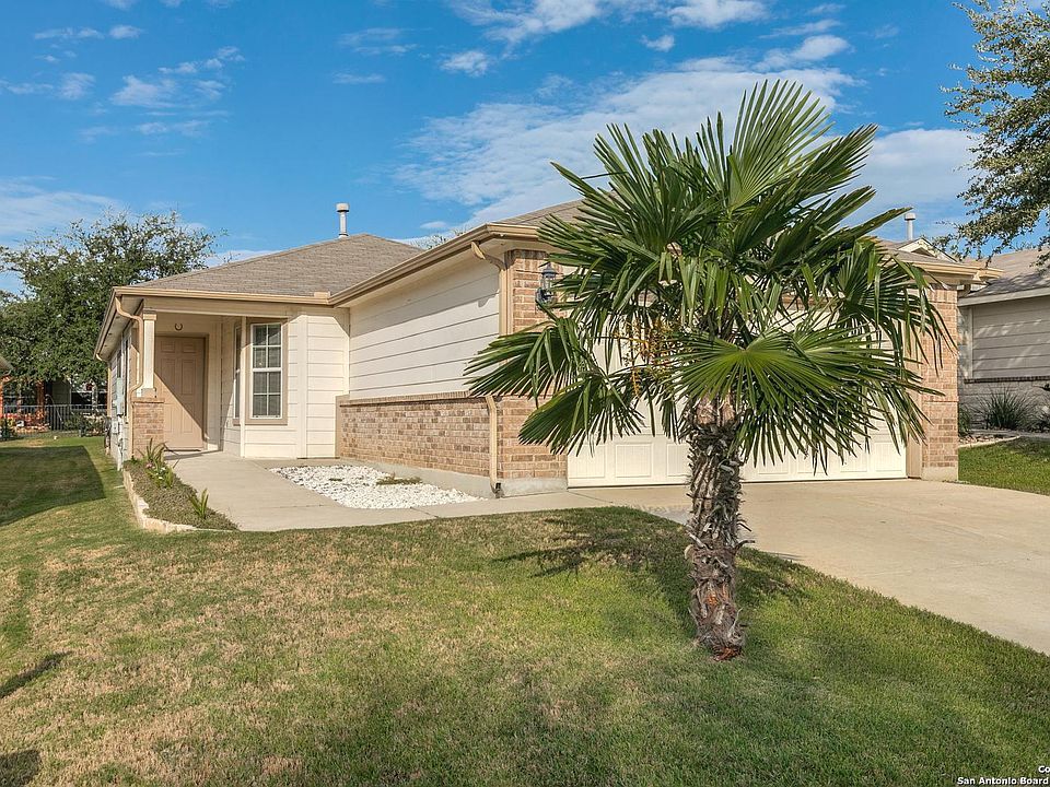 Located in Del Webb's exclusive Hill Country Retreat, this beautiful 3 bedroom, 2 full bath home is comfortable resort living at it's finest! The one level home, with no steps, is tastefully decorated in a neutral palette. Designed with privacy, the primary room is split from other rooms: Flex room is remodeled to true bedroom. Natural light fills the house and each window is fitted with custom blinds. Find extra storage in the three extra hall closets, along with walk-in closets. When not outdoors on the spacious covered patio, enjoy all the neighborhood social activities and state of the art amenities: heated indoor pool, two outdoor pools, pickleball & tennis courts, fitness center, nature trails and clubs for travel, chess, wine, books and more! Tour this move-in-ready property and belong to an outstanding, sought after community!