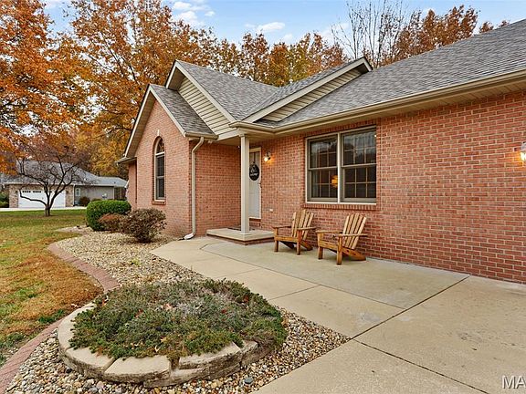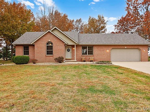 Time moves a little slower here. This solidly built, all-brick ranch sits on a full acre in a quiet single-street cul-de-sac, surrounded by soaring trees, peaceful field views & meticulous landscaping for standout curb appeal. Inside, warm wood floors & vaulted ceilings enhance the open floor plan w/ a built-in curio cabinet welcoming you in the foyer. The spacious, sun-filled living room showcases serene country scenery. The kitchen offers a pantry, abundant cabinetry, & matching Whirlpool black stainless appliances. Three main-level bedrooms include one w/ vaulted ceiling, a tall arched window & dual closets. The owner’s suite features a walk-in closet & Jack-and-Jill bath. The finished lower level includes a rec room with dry bar, full bath w/ walk-in shower, large bedroom w/ generous closet, built-in storage & laundry closet. The 2-car garage offers a dedicated workshop space & backyard access. Outdoors, unwind on the patio overlooking the expansive yard & raised garden bed; perfect for quiet mornings or evenings spent stargazing. Enjoy small-town living just down the road from the charming community of Grantfork. New roof, HVAC (Sept. ‘25) & fresh interior paint (‘25). Home also features a water powered backup sump pump.