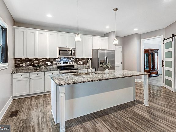 Wake up to the quiet of nature and the soft light filtering through the trees in this nearly new home tucked on over an acre of peaceful land. Step into your spacious primary suite, choose an outfit from one of your two walk-in closets, and start your morning in the bright, sun-filled morning room with coffee in hand as you take in the view of the fully fenced backyard. The open main level, with custom LVP flooring and crown molding throughout, makes every step feel effortless. The kitchen flows easily into the dining area and living room, where the custom fireplace adds warmth and charm. Step out onto the composite deck for a breath of fresh air or a quiet moment before the day begins. Afternoons are easy here, with space for everyone to spread out, a large secondary bedroom for guests or family, and a double vanity bath that keeps mornings running smoothly. When the day winds down, the yard becomes your private retreat, perfect for relaxing or hosting friends under the open sky. With no HOA, Verizon Fios internet, and quick access to shopping and commuter routes, life here feels both relaxed and connected. If you ever need more space, the walk-out basement with the morning room extension offers endless potential for the next chapter of your home.