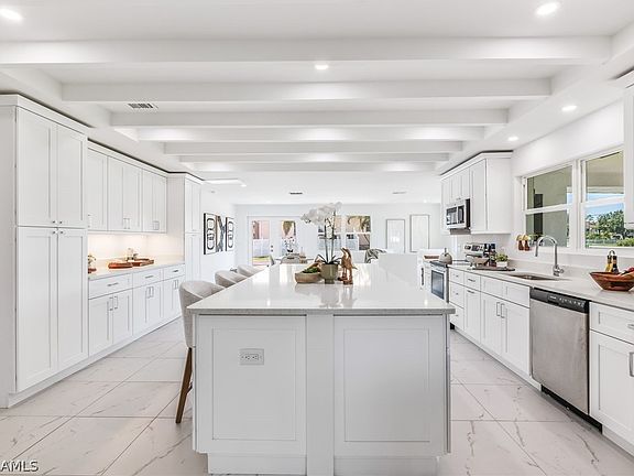 Your opportunity to own 1.55 acres in the heart of Fort Myers! This oversized lot boasts two driveways accessible from a private and public road. The restored and reroofed outdoor 1200 sq. ft. pole barn is large enough to store your trailer, RV, boat or all three. Free from the hassle of a HOA, sits a beautiful, newly renovated 2,874 sq ft under air home. With free-flowing floor plan, brand new impact windows and doors, NEW ROOF, massive bonus room and upgraded finishings, this 3/2 is ready for you and your family today. Through the renovated kitchen you will find quartz countertop throughout with an oversized island. Cabinets on both sides, great for meal prep. Recess lighting was installed throughout the entire house. Into your owner's suite you will find your walk-in shower, freestanding tub and walk-in closet. The massive bonus room leads you into your 2 car garage. The garage door and motor were replaced in the renovation. Owner currently holds Flood policy that is transferrable. All furniture is negotiable. Home is perfectly placed: 9 miles from the airport (RSW), 6.5mi from JetBlue Park, 1.6mi from Hammond Stadium and 1mi from Gulf Coast Hospital.