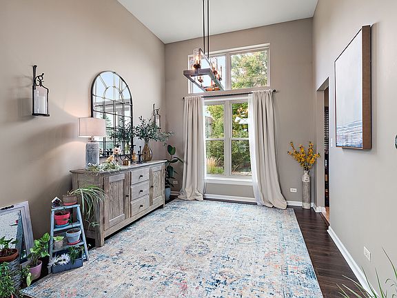 Welcome to Kings Crossing subdivision in Plainfield! This stunning two-story home offers 4 bedrooms, 2.5 baths, plus a main-level office that can easily serve as a 5th bedroom. With over 3,035 sq. ft. of living space (not including the finished basement), this home combines functionality, comfort, and style in one desirable package, all within Plainfield District 202 schools. Step inside the bright two-story foyer. The home has dual staircases and a landing that overlooks the entry. The living and dining rooms feature soaring volume ceilings, elegant columns, and abundant natural light, perfect for entertaining. The updated kitchen is the heart of the home, featuring granite countertops, a large island with seating, soft-close cabinetry, stainless steel appliances, pantry, canned and pendant lighting, and table space with soft close cabinets. The kitchen opens seamlessly to the family room with a cozy gas fireplace, creating the ideal gathering space. The main floor office/optional bedroom makes working from home easy, while the powder room and mudroom add convenience to daily routines. Upstairs, the oversized primary suite impresses with a barrel ceiling, walk-in closet, and a luxurious en suite bath featuring a double vanity, soaking tub, and updated shower with rain shower head. Three additional bedrooms, an updated hall bath, and a versatile loft (perfect for a reading nook or homework space) complete the second floor. The finished basement expands your living space with a large recreation room, half bath, and laundry room. Outside, enjoy your private fully fenced backyard with a brick paver patio and fire pit, ideal for relaxing or entertaining. The home's curb appeal is enhanced by its landscaped yard, upgraded entry doors, and low-E vinyl windows. Recent updates include: kitchen & bathroom renovations with modern finishes, updated flooring throughout, new HVAC system with humidifier (2022), roof resurfaced (2020), and energy-efficient double-hung windows. With a 3-car garage, finished basement, and thoughtful updates throughout, this home is ready for its new family.