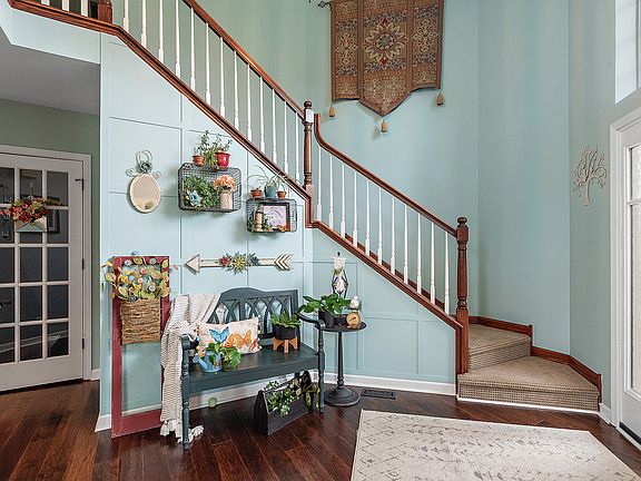 Landscaped yardFinished basementLarge island with seatingKitchen and bathroom renovationsPrivate fully fenced backyardBright two-story foyerDual staircases
