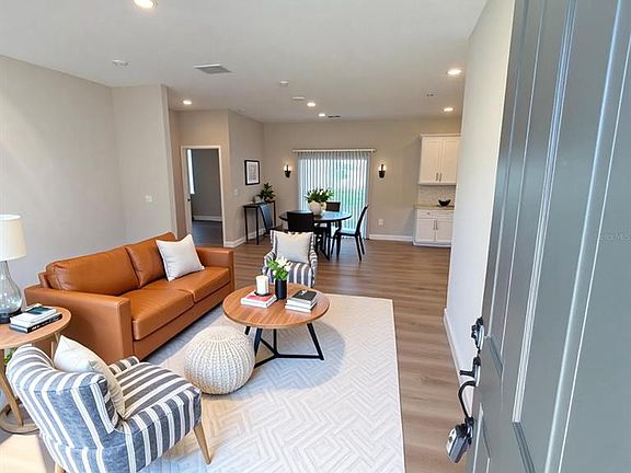 One or more photo(s) has been virtually staged. One or more photo(s) has been virtually staged. MOVE-IN READY! Welcome to this brand-new construction home. Upon entering, you'll be impressed by the open, airy layout, blending the living room and kitchen into a cohesive, expansive floor plan. This residence features 4 generously sized bedrooms and 2 beautifully designed bathrooms. The kitchen, a dream for cooking enthusiasts, showcases stainless steel appliances, a striking island, and neutral, calming finishes. The light-filled great room creates a welcoming atmosphere, perfect for both relaxation and entertaining. Escape to the spacious primary suite, offering a luxurious ensuite bathroom and an expansive walk-in closet. The primary bath provides a serene retreat, complete with a soaking tub and separate shower. Both bathrooms are tastefully appointed with double sinks, quartz countertops, and elegant tile finishes extending to the ceiling. Other key features include a practical laundry room with a sink, a covered lanai for outdoor enjoyment, and a two-car garage offering plenty of protection and additional storage space. Don’t miss out on the opportunity to own this brand-new gem in this neighborhood. Contact us today and make this dream home your reality!