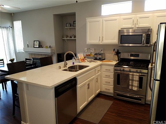 Great neighborhood, one story, and under $500k!! Situated in the highly desired, gated Ashwood community near Santiago High school. This home has lots of updates. New vinyl plank flooring, carpet, newer sinks and faucets in kitchen, stainless appliances and quartz countertops. New modern baseboards and door moldings throughout. Master bedroom has new dual sink vanity, mirrors, fixtures, granite countertops and a large walk-in closet. Bathrooms updated with fixtures, cabinets and sinks. Ceiling fans throughout. Fireplace. Nicely maintained. Newly painted interior and full exterior. Beautifully updated, corner lot, private backyard and low HOA $69.
