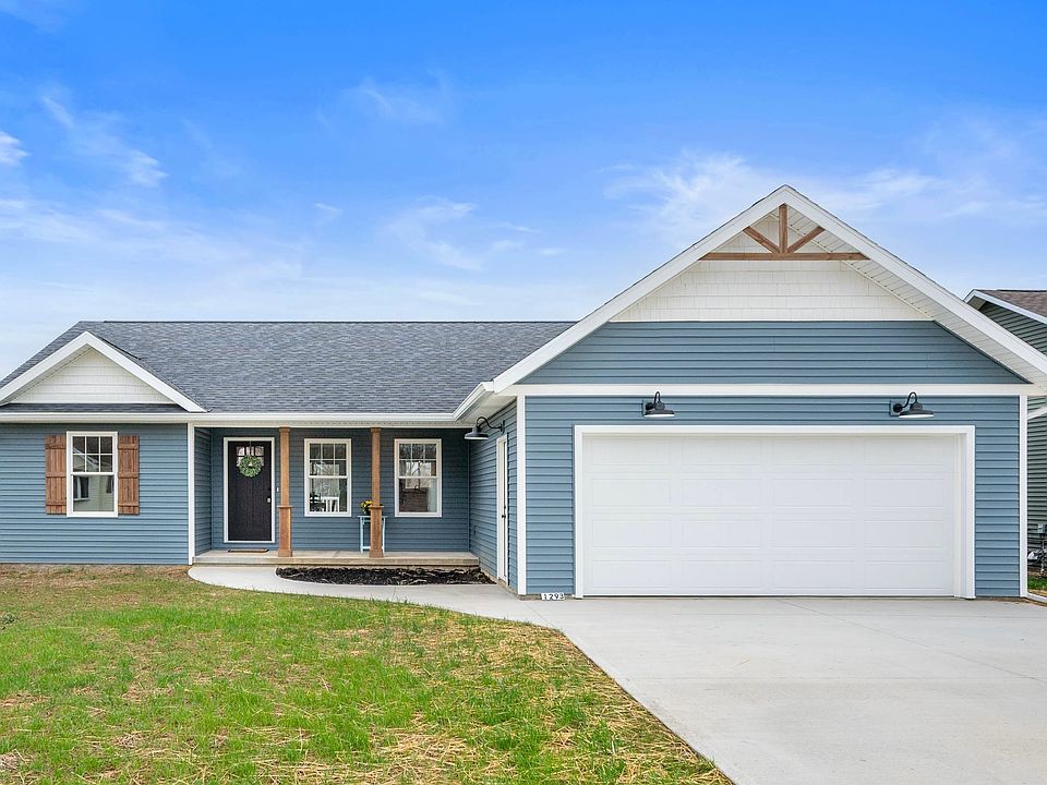 Brand New Ranch Home Near Wilbur Wright Trail! Welcome to 1293 Garner St., New Castle-a stunning, never-lived-in ranch home offering 1,450 sq. ft. of modern comfort. Featuring 3 spacious bedrooms and 2 full baths, this split bedroom floor plan home boasts an open floor plan with a seamless flow between the living, dining, and kitchen areas. The beautiful kitchen is the heart of the home, showcasing quartz countertops and included appliances, making it move-in ready. Luxury vinyl plank flooring runs throughout the main living areas, while plush carpet adds warmth to the bedrooms. Step out back and enjoy the lovely deck, perfect for relaxing or entertaining. Additional features include a 2-car attached garage and a prime location in a new, small neighborhood just steps from the Wilbur Wright Trail. Conveniently situated 2 minutes from Memorial Park, the YMCA, Northfield Park Medical Pavilion, with Henry Community Health just 3 minutes away.
