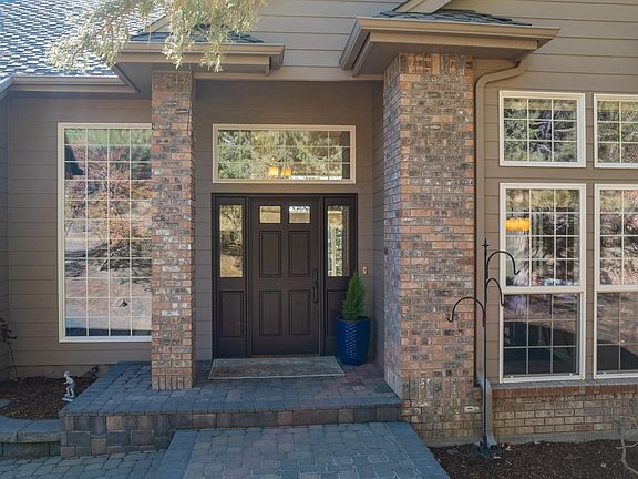 Situated on a private .85-acre lot on one of Awbrey Butte's most coveted streets, this 4 bedroom custom home in NW Bend is an exceptional value! As you step inside, you're immediately drawn to the floor-to-ceiling windows flooding the room with natural light. There's easy access to the south facing deck from both the living room and kitchen, a perfect place to enjoy the city and tree top views. The main level also features the primary ensuite, complete with a freestanding tub, a walk-in shower, dual vanity, and a large walk-in closet. The kitchen is well-appointed with high-quality appliances including double wall ovens and lots of storage.  Downstairs, you'll find three generous guest rooms, a full bathroom, the utility room, and a bonus room that leads out to the lower patio and backyard space—perfect for entertaining or enjoying the outdoors. The home also has a heated driveway and a big 3-car garage. Live the Bend dream in this beautiful home by summer.