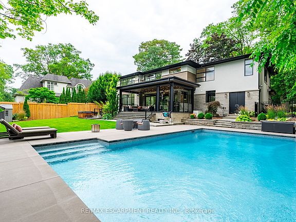 Tucked away on a beautifully landscaped 100-by-150-foot lot, this remarkable home delivers a seamless blend of luxury and liveability. A grand foyer with soaring 20-foot ceilings creates a dramatic first impression, setting the tone for the refined interiors beyond. Outside, the grounds have been masterfully designed to offer a private sanctuary, complete with a tranquil swimming pool and a generously sized spa hot tub for eight, perfect for relaxed evenings or elegant outdoor entertaining. Ideally located with convenient access to both the QEW and Lakeshore Road, this address offers the best of both worlds: urban accessibility and the relaxed charm of lakeside living. Just minutes away lies the heart of Port Credit, a vibrant waterfront community known for its eclectic dining, boutique shops, and scenic shoreline. Golf enthusiasts will appreciate proximity to renowned courses such as the Mississauga Golf & Country Club and Credit Valley, enhancing the prestige of this coveted neighbourhood. Every detail has been thoughtfully considered, from a discreet three-storey elevator with direct access from the garage to smart home features like built-in temperature monitors on each floor that ensure year-round comfort and efficiency. The main level boasts elegant 10-foot ceilings, while the second and lower levels are equally impressive with generous 9-foot heights that create a sense of spacious continuity. Luxury Certified.