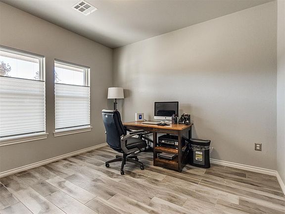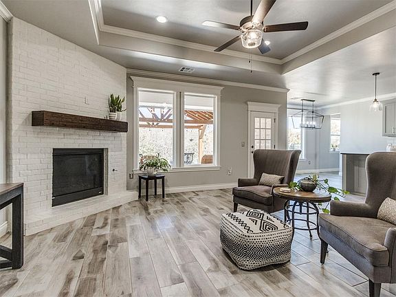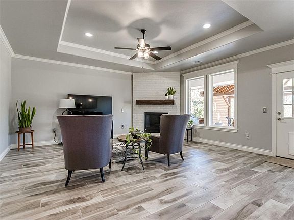 Welcome to 12932 Black Hills Drive, tucked inside the picturesque Porches neighborhood. Step inside and you’ll find a front bedroom flooded with natural light — perfect as a guest room or a bright home office. The open-concept living area is made for everyday comfort and effortless entertaining. The living room features a cozy gas fireplace and expansive windows that keep the space glowing all day. The kitchen is a true standout with its gas range, black leathered granite countertops, built-in microwave, abundant cabinetry, and a spacious island ideal for cooking, gathering, and entertaining.The primary suite is a peaceful retreat. The ensuite bath offers a large walk-in shower, double vanity, private water closet, and a freestanding soaking tub that invites you to unwind. Step out to the covered back porch and take in the sweeping Oklahoma sky and peaceful lake views. Residents here enjoy private access to the lake and dock — perfect for quiet mornings or sunset relaxtion.