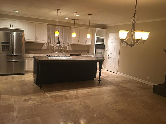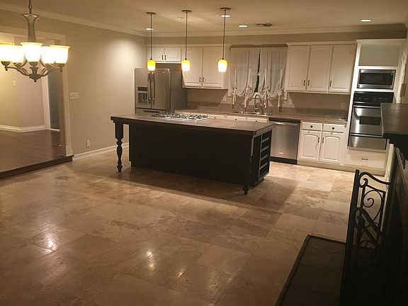 Gourmet kitchenLarge center islandOversized yardStainless steel appliancesRecessed lightsGranite countertops