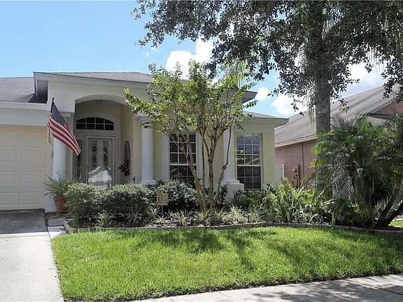 Comfortable open concept 3 bed 2 bath home with vaulted ceilings and split floor plan. Exit the sliding glass doors and relax on a large screened lanai while enjoying the bountiful flowers and landscaping that overlook the pond. There is even an extra patio that is perfect for grilling out on. The kitchen boasts a fresh look with a brand new refrigerator, high powered garbage disposal, newer appliances, sink, faucet and wood cabinets. The home has new laminate wood floors in the great room while the two bathrooms have new tile flooring. New Hot Water Heater Oct 2016. New Garage Door Opener June 2018. As an added bonus, the laundry room has central air! This home is located in a community with 2 pools, park, playground and clubhouse. Close to shopping & public transportation. Buyer to verify schools. SCHEDULE TODAY BECAUSE THIS WON'T LAST LONG!
