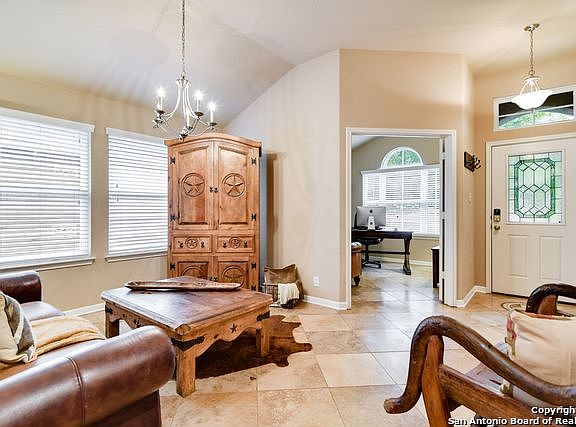 Meticulously maintained 1.5 story home with open floor plan and tons of upgrades just off Huasman Rd near 1604. Oversized tile and engineered wood throughout downstairs. Massive gourmet kitchen with granite countertops and gas cooking. Spacious secondary bedrooms with second gameroom in between and a separate office. Huge game room/media room upstairs. Three-car garage. Gorgeous mature trees. New sod in front. Tranquility awaits out back with large covered patio, extended deck, and stone fire pit.