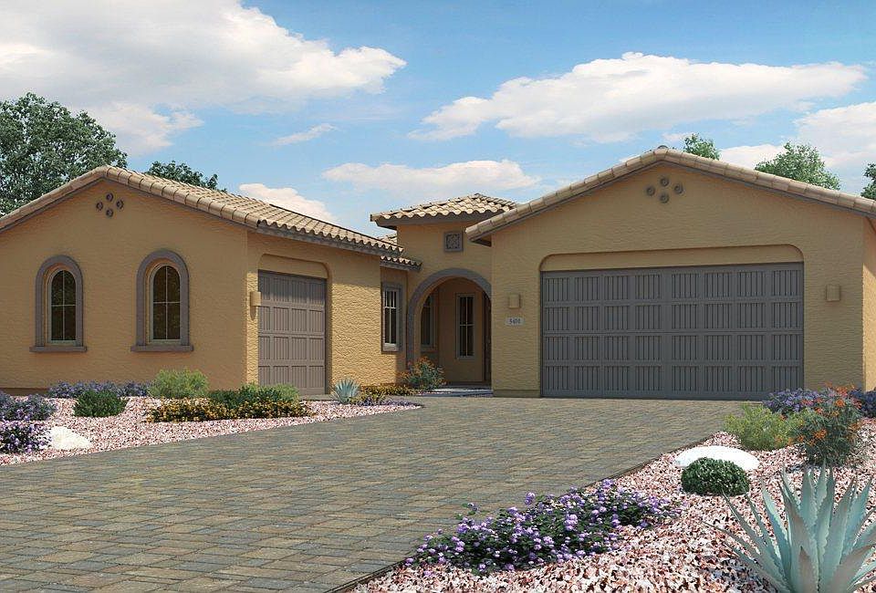 This beautiful single story Aurora includes 3 bedrooms, private den, three full bathrooms, large game room, stunning Super kitchen with Stainless Steel Monogram appliance package, granite countertops and upgraded cabinets, and central great room, interacting perfectly with a 12' double sliding door to the covered patio. The master suite includes private bathroom w/ large upgraded step-in Spa shower w/bodyspray jets, double sink vanity and large walk-in closet. This home also includes a split 3-bay split super-garage w/5' side extension. A Public Report is available at the Arizona Department of Real Estate website.