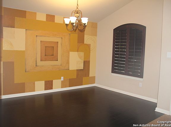 Immaculate 1.5 story home near La Cantera. 3 bedrooms & study downstairs w/ gameroom upstairs, wood floors in formal dining, study & living, wood shutters in formal dining & study, Hunter Douglas shades in master & living/breakfast, granite countertops in kitchen & master bathroom, kitchen island w/ detailed backsplash, surround sound in gameroom, wall storage unit in garage, water softener, sprinklers, manicured landscaping w/ mature trees, in wall pest control system. Fridge to convey w/ acceptable offer.