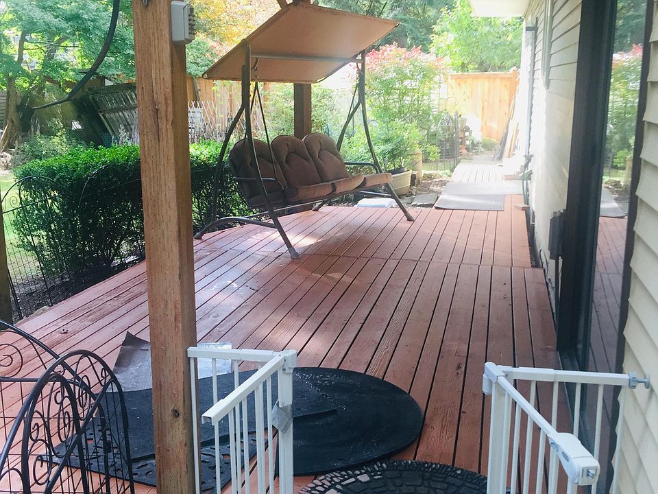 Covered deck and private patio overlooking private back yard in secure neighborhood. Located at the end of a long cul d' sac. Located on Kent East hill in Fairwood area. 2-3 miles to shopping and Valley Medical Center. Straight East of Sea Tac airport. Easy access to I 405 and Hwy 18. Close to Maple Valley and Covington as well as Hwy 18. Back roads to Bellevue area takes about 20 minutes. Owner lives on site with chickens and wooded back yard. Damage deposit and Last months rent due at signing. Can make arrangements to pay it over 3 months.