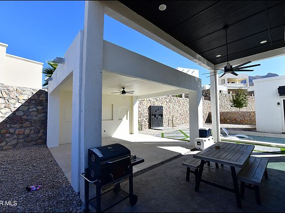 BEAUTIFUL SINGLE STORY MODERN HOME WITH A FLOOR PLAN THAT WRAPS AROUND THE GORGEOUS POOL. OPEN LIVING ROOM WITH FIREPLACE, CHEF'S KITCHEN WITH LARGE ISLAND, STAINLESS STEEL APPLIANCES, LARGE GLASS WINDOW WITH VIEWS OF THE POOL FROM ALMOST EVERY WINDOW. FOUR BEDROOMS PLUS OFFICE, OUTDOOR POOL SHOWER, OVERSIZED COVERED PERGOLA, LARGE PRIMARY SUITE WITH BEAUTIFUL BATH.