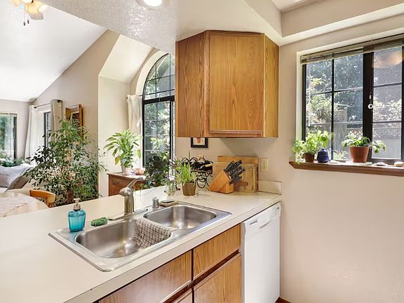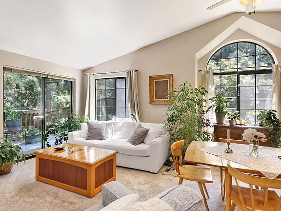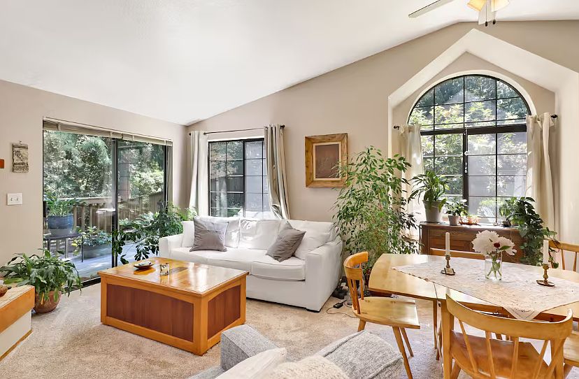 Natural lightGrand arched windowsStunning forest viewsPeaceful two-bedroomPrivate back patioVaulted ceilings