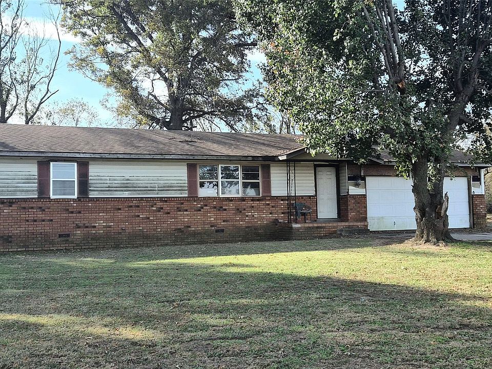 Newer roof , flooring has been removed , there is a heat air unit , but unknown if working. Septic, rural water, located on Old Highway 33 , Chouteau super close to Industrial Park and Highway 412 and about 40 minutes from Tulsa.