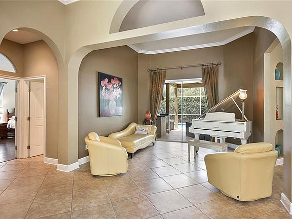 If you are looking for a beautiful updated home perfect for entertaining this is it! The outdoor area is very private. There is a sparkling heated salt pool & spa and a large covered lanai area with a wet bar with granite counter and beverage refrigerator. The home features lots of larger windows to allow this home to be flooded with natural light. This beautifully updated home features the Master Bedroom, office, and 2 secondary bedrooms downstairs, and a large bonus room or bedroom with full bath upstairs. There is a 26x15 gourmet kitchen with 42" cabinets with crown molding, stainless steel appliances with double convection ovens, and a center island with vegetable sink. The kitchen opens to the family room that features a marble faced gas fireplace. There is a large formal dining room and a formal living room with French Doors. The pool has just had a major renovation including resurfacing and adding new tile, new deck paint, new salt chlorinator, new electric heat pump, and new pool pump. Also added in 2018 were new hurricane rated garage doors, a new front door with custom glass inlay, and a new dishwasher. The current owners have also repainted the exterior and some of the interior rooms as well. They also added custom organizers to the Master Bedroom closet. One of the AC's were was replaced in 2015. Pool screen replaced in 2014. Whole house water softner. Move-in ready home in a lovely section of Heathrow!