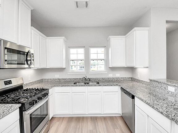 Welcome home to this 3 bedroom, 2 bath home with 9' ceilings and an open concept layout. Featuring crown molding, granite countertops, and energy-efficient upgrades like a 16-SHEER HVAC system and Low-E windows. Enjoy a double-wide driveway, two-car garage, and spacious backyard with water and electricity access. Take advantage of the low tax rate and POA fees, along with brand new schools and a Splash Pad nearby. This property also includes a stainless steel appliance package. Only minutes away from the Grand Parkway you'll get to your destination in no time. Enjoy the outdoors at the stunning Lake Houston Wilderness Park where you can hike, camp, and walk the nature trails. Cool off at Big Rivers Waterpark with water slides and cabanas. Shop till you drop at the Valley Ranch Town Center, a premier Houston shopping center close to The Woodlands and just north of Kingwood, with a diverse collection of shopping, dining, and entertainment. Don't miss out! Schedule your tour today!!!!!!!