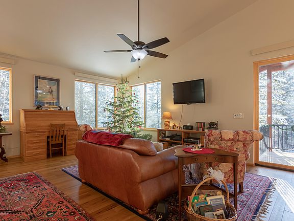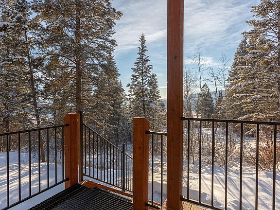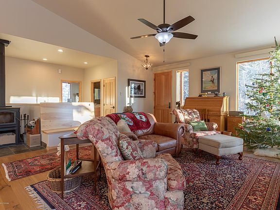 A modern cabin in the trees, on the edge of 400 acres of Wyoming Game and Fish and 222 acres of BLM land, this cabin is a dream. The mature landscape offers a quiet, calm surrounding, with slight views of the valley through the snow covered Evergreen's. This home was custom built in 2018, a true piece of craftsmanship of quality and preciseness, situated on over 4 acres. The cabin has two bedrooms upstairs with two baths, and two bedrooms and one bathroom downstairs, granite and quartz counter tops, hickory wood floors, and an abundance of storage and natural light. With approximately 4.12 acres, you have multiple building sites to expand living quarters or add on in the future.