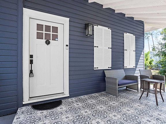 Step Back in Time with This Fully Remodeled Historic Charmer Built in 1931, this stunning home perfectly blends historic character with modern luxury. From the moment you arrive, the covered front porch, decorative ceiling tiles, and original wood doors and trim tell a story of timeless craftsmanship — while every modern upgrade ensures comfort and peace of mind. Inside, you’ll find soaring ceilings, crown molding, and a completely remodeled interior featuring all new appliances, a beautifully updated bath, new roof, updated lighting, and all new hurricane impact windows. Every detail has been thoughtfully chosen to preserve the home’s charm while adding contemporary style. The outdoor spaces are just as inviting — a privacy-fenced side yard, fully fenced front yard, and a beautiful courtyard connecting the home to the detached double garage (22x25). Perfect for morning coffee, evening gatherings, or simply enjoying your own private retreat. Additional upgrades include a whole home water filtration system, and best of all, the home is sold fully furnished — ready for you to move right in and start enjoying the charm and comfort of this rare gem. This one-of-a-kind property combines history, elegance, and modern convenience — a true historic treasure ready for its next chapter.