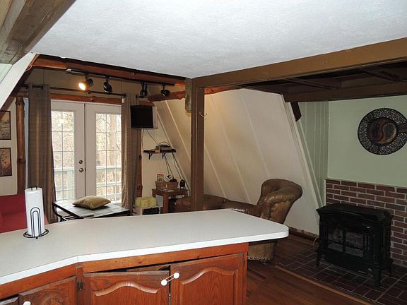 Rare Holiday Haven opportunity to buy one or more established rental cabins. Kenny's Cove includes two lots, both with great view and access to private pond for Patrick Haus guests. This classic A-Frame has 2BR and 1 recently updated bathroom with tiled walk-in shower. The deck features a hot tub with lower deck for pond access to swim, canoe or kayak.... or just float away the stress and enjoy! Well, septic and propane are separate for this cottage. Two sheds for extra storage space and semi-circle drive provides easy access from front entry and parking. Close to the HH lake, shelter house and play area.