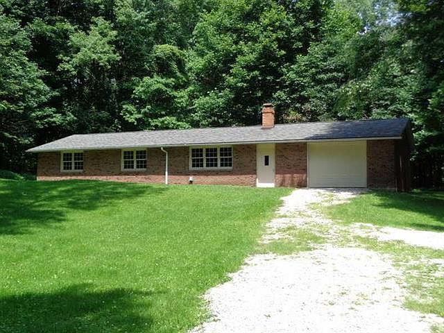 Almost 3 Acres Of Seclusion. Wooded Beauty. 3 BR Brick Ranch w/Grg. Open Great Rm/Kit/Dining Area. Ben Franklin Stove FP. 1 BA w/Double Sink. Lg Utility Rm. Home Warranty.