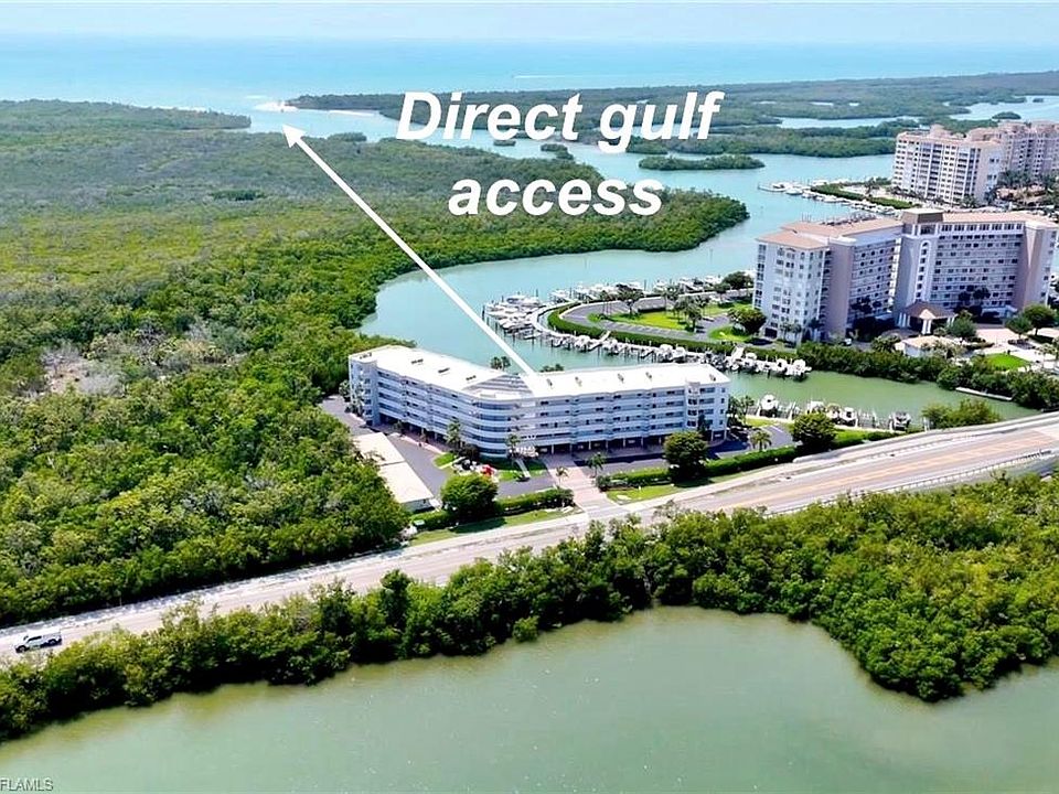 Rarely available is this North Naples PENTHOUSE CONDOMINIUM with a BOAT SLIP/LIFT offering the luxury of a top-floor residence combined with the convenience of private water access. This west facing condo has views of the GULF with stunning SUNSETS, high-end finishes, and spacious living areas, while the deeded boat slip provides a dedicated, accessible parking spot for a boat at the community's private marina. This type of property represents an exclusive, coastal way of life that blends residential comfort with maritime activities. The Anchorage is a boutique gated community providing a tropical resort type of lifestyle! Upon entering, you are greeted by an open concept living space that seamlessly integrates the kitchen, dining and living area. The breakfast bar becomes the heart of the space — a casual yet refined perch between function and view…a perfect space for your early morning coffee or late-night wine and conversation. The thoughtfully designed kitchen includes granite countertops, tile backsplash, cherry cabinets, and upgraded stainless-steel appliances. The living room is a generous space, with access to the large, screened lanai and is a perfect place for entertaining or relaxing after a day of boating, fishing, or kayaking! Accordion sliding glass doors to the lanai lets the outside in and provides sunlight and stunning views! While on the lanai, you can enjoy watching the dolphins, manatees or listening to the sound of the osprey! The Primary Bedroom with access to the lanai has its own En-suite bathroom with a tiled shower and a large walk-in closet for ample storage. The second bedroom has water views and is ideal for guests or as a home office. It has easy access to a second full bath which includes granite and a shower/tub combo. Additional features include a laundry space with full size stackable washer/dryer and built in cabinet with a sink. For outdoor enjoyment there is a heated WATERFRONT POOL, newer Tiki Bar, restrooms, grilling area and tables for outdoor dining. Added amenities include a storage closet and one deeded covered parking space conveniently located near the elevator. This is a hidden gem just minutes from MERCATO, DELNOR WIGGINS PASS STATE PARK, VANDERBILT BEACH, THE TURTLE CLUB and so much more! Do not miss your opportunity to own a little slice of heaven!