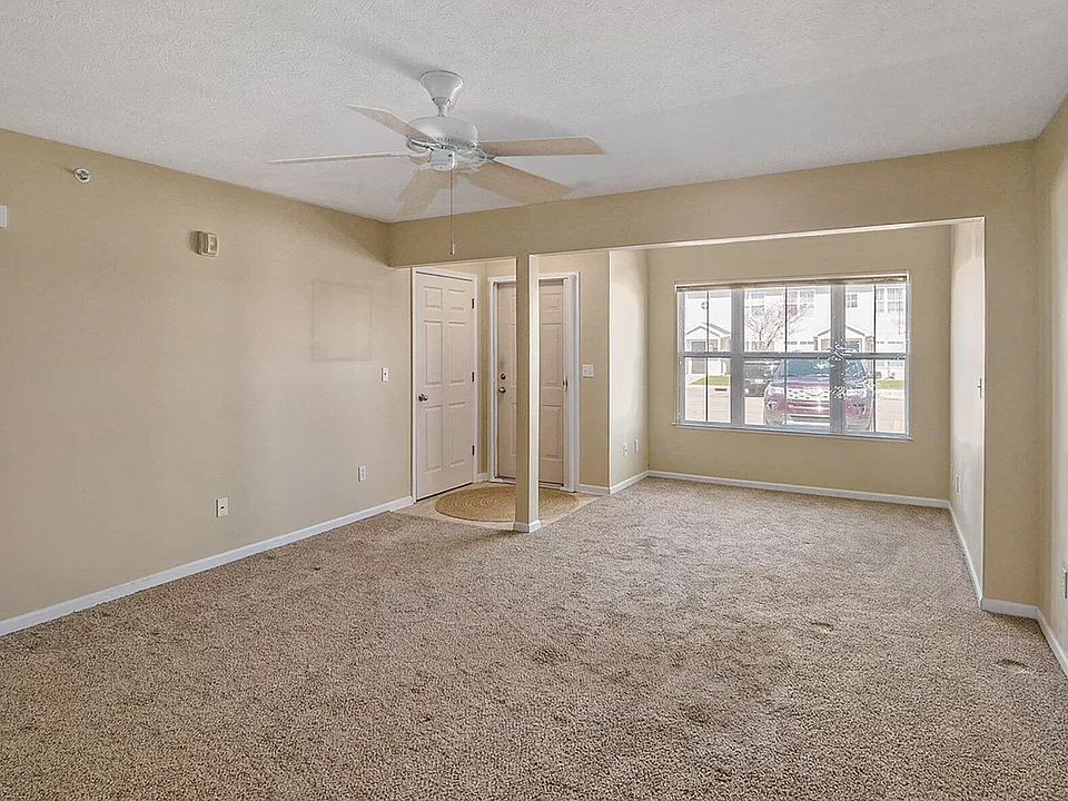 As you step inside, you're greeted by a generously sized living room, opening up to the kitchen and dining room. Both bedrooms have walk in closets along with an extra storage closet near the living room.