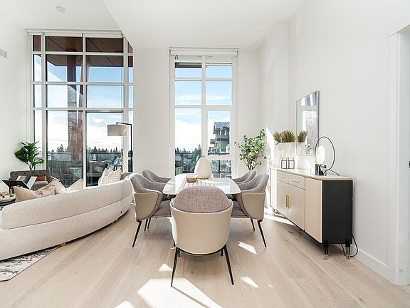 Discover your next chapter in this rare PENTHOUSE at Residences at Lynn Valley — offering the space, comfort, and ease perfect for downsizing. This bright, airy home features 2 spacious bedrooms with soaring ceilings, 2 full bathrooms (both en-suite) plus a powder room, and central A/C. The chef’s kitchen with premium BOSCH appliances opens to an expansive living area and large deck where you can relax and enjoy stunning sunsets (see photos). Ceilings up to 13'8" and south-facing windows flood the home with natural light, creating a sense of openness that’s hard to find in condo living. All in the heart of Lynn Valley Town Centre, steps to shops, services, and everything you need. A rare chance to enjoy penthouse living in a vibrant, walkable community. Comes with 2 parking + large locker.