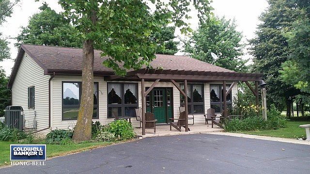 Beautiful energy efficient, all electric home with 2 bedrooms & 2 full baths, finished basement boasts 20 X 22 family room; property includes 1.14 acres; Two car detached garage; Whole house generator. Home is highly efficient thanks to the envelope construction which utilizes the heat from the sun to heat the home. Newer roof, garage door, appliances, pergola, windows, interior paint. All dimensions are approximate.