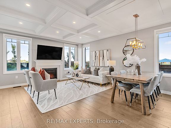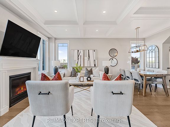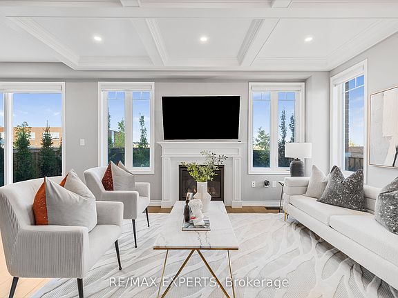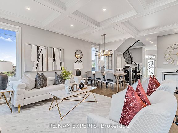 Backs onto a schoolSoaring main floorPorcelain tilesEngineered hardwood floorsElegant coffered ceilingsPot lightsUpgraded light fixtures