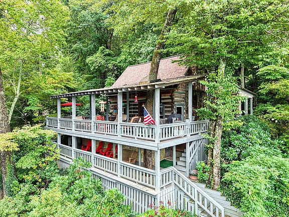 Nestled on over 130 feet of lake frontage on Lake Chatuge, this charming 4-bedroom, 2-bath cabin offers a cozy retreat in the tranquil North Georgia Mountains. The large covered porch provides the perfect spot to enjoy the beauty of spring, summer, and fall, while the spacious floor to ceiling stone fireplace keeps the interior warm and inviting during winter gatherings with family and friends. The home features four bedrooms, including a newer primary suite not reflected in public records, and two baths, with floor-to-ceiling windows framing stunning views of the lake and surrounding mountains. The kitchen and bathrooms are ready for personal updates, and the roof was replaced in November 2021. A double-deck dock with a lift for a pontoon boat offers ideal access for sunsets and water activities. Located just minutes from downtown Hiawassee and close to Brasstown Bald, this cabin provides easy access to championship golf, hiking, horseback riding, fishing, water sports, tennis, arts and crafts, concerts, fairs, and festivals. Combining lakefront charm with mountain serenity, this property is the perfect retreat for full-time living or a peaceful weekend escape.