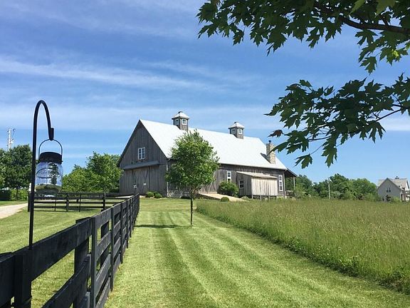 Wonderful opportunity to own one of Shelby County's most beautiful farms. This 104+/- acre Farm offer privacy and seclusion yet only minutes from I-64 and downtown Shelbyville. This well maintained property consists of a distinctive interior designer's home with high ceilings, beautiful detailed craftsmanship and balconies overlooking the 24-acre hayfield and pastures bordering Guist Creek. The nationally acclaimed wedding venue, The Hay Barn at Long Ridge Farm features magnificent views, Great Room, Commercial Kitchen, 1 full bath and 3 half baths, 2 Bedrooms and a parking lot. You will love the 6 Stall Hardie Board plank constructed Horse Barn featuring 12'x12' stalls, Tack Room, Feed Room, Hayloft and Equipment storage. This barn also includes lovely upgraded fixtures, stalls, dutch doors for your horses and 4 cross doors to enjoy nice summer breezes from any direction. This turn key Farm includes 7 Fenced Pastures all with automatic water, heavy use areas for hay feeding and 3 with turn out sheds. Income Producing opportunities: AirBNB for Derby, Keeneland, the Bourbon Trail, High quality Hay and Pasture leasing. 35-45 minutes to Lexington or Louisville Airports, Keeneland, Churchill Downs and The KY Horse Park.