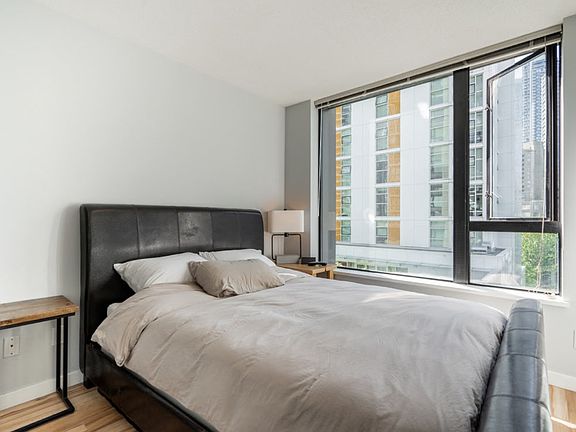 Corner unitExpansive city viewsFloor-to-ceiling windowsModern kitchenStainless steel appliancesIn-suite laundrySpacious bathroom