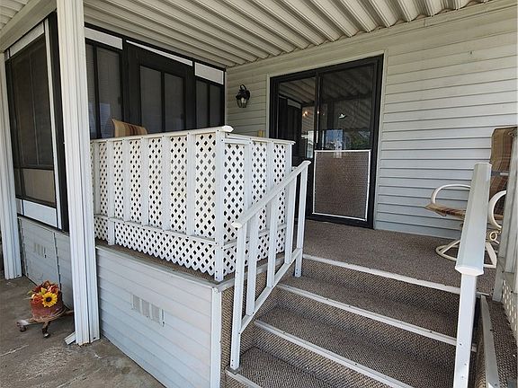 Attached and enclosed sunroomHoney colored wood beamsLarge windowsTile countersPrivate laundry hook upsButcher block breakfast barCovered carport