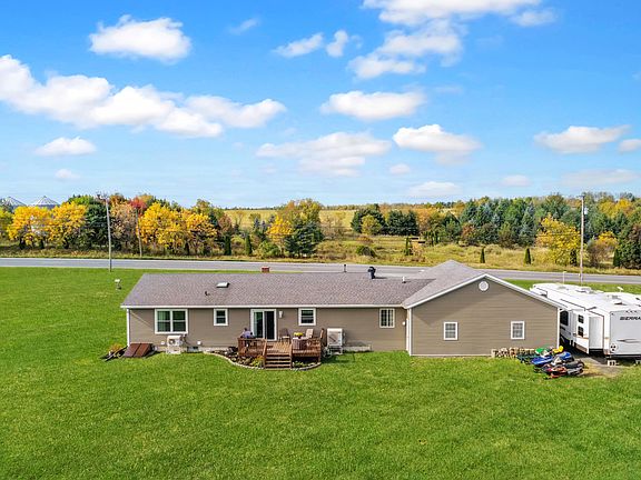 This Caribou ranch sits on 5 acres and offers an easy day-to-day layout. Enter through the attached 2-car garage to a mudroom/entry with a half bath and laundry. Straight ahead, the kitchen opens to the dining area with a slider to the back deck. The living room is comfortable and efficient with a new 2025 heat pump. All three bedrooms are at the same end of the home; the primary has its own half bath and a new 2025 heat pump. The main level also includes a full bathroom. Downstairs, the partially finished basement adds a flexible family/bonus room, two additional rooms for office, hobby, or storage, plus a full bathroom and a spacious utility area. The yard is nicely landscaped around the home, and the deck off the dining area makes outdoor time easy. A solid package with space to spread out, practical storage, and efficient heating/cooling where you want it most. Be sure to use the 3D Virtual Tour, Video, and Floor Plan to fully understand the layout!