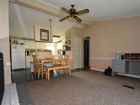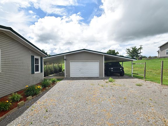 Looking for large rooms, large garage and large lot close to Taylorsville Lake? This could be what you're looking for. Low maintenance vinyl siding and new metal roof. Covered front deck and nice landscaping. Detached 1-1/2 car garage with room added for more storage. Garage also offers a covered patio on one side and a carport on the other side. Come on in the house and find an open space with both a living room and family room, separated by a see through wood burning fireplace. The living room is open to the kitchen and offers plenty of room for dining and enjoying friends and family. Kitchen appliances stay. There is a desk area and a pantry wall too. The vaulted ceiling gives large area an even more spacious feeling. Separate laundry room; the washer& dryer stay with this home.