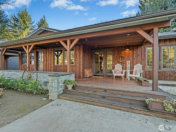 Escape to peaceful country living just minutes from town & abutting the Tolt Trail! kitchen is equipped with;Wolf, Thermador, soapstone & quartzite counters, farm sinks, a wine fridge & more! Culinary dream kitchen. Stunning rambler, remodeled thru-out with trendy details. 6 stall barn with a tack rm, tractor/equip storage, hot/cold wash rack, hay storage & a 1/2 bath. 85X180 uncovered arena with professional grade, All-weather footing. Freestyle Horse Exerciser, large trailer parking with turn around & is fully fenced with no climb horse wire. 50x25 RV height shop PLUS a 40X45 detached garage & a separate room that is fully finished, heated + laundry. Endless possibilities; horse training, pet boarding, hobby farming. See the upgrade list!